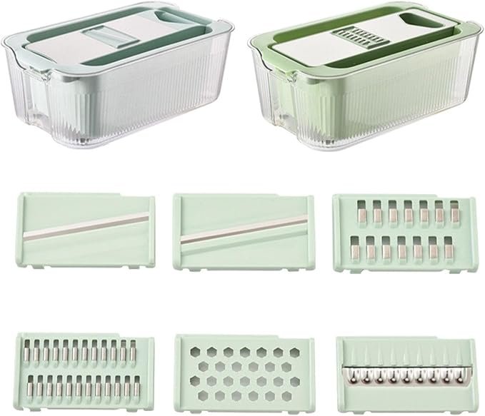 🥒 Coupe-Légumes Manuel Multifonction avec Boîte – 6 Lames