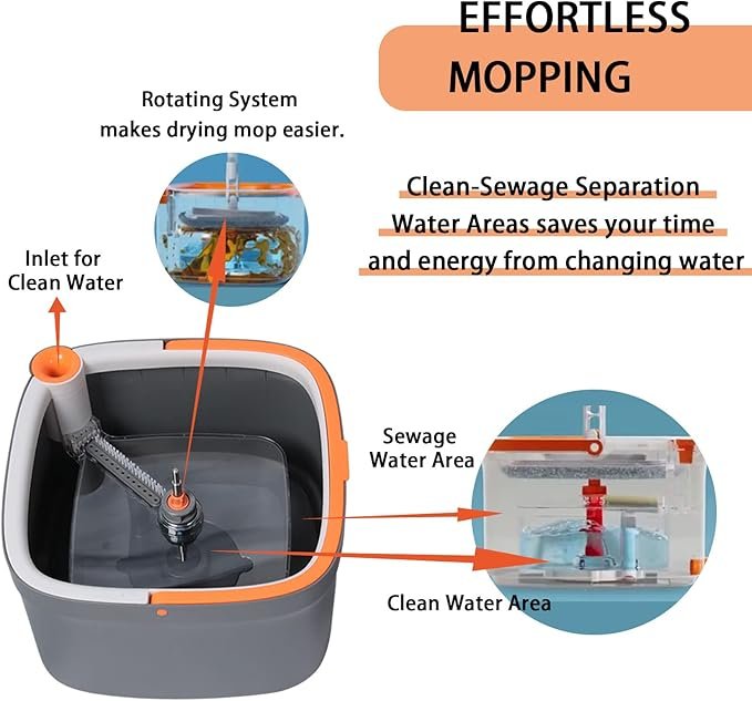 Le manche léger et simple assure une bonne prise en main, tandis que les deux serpillières incluses garantissent une hygiène optimale et une utilisation prolongée sans interruption. 🧽🧹